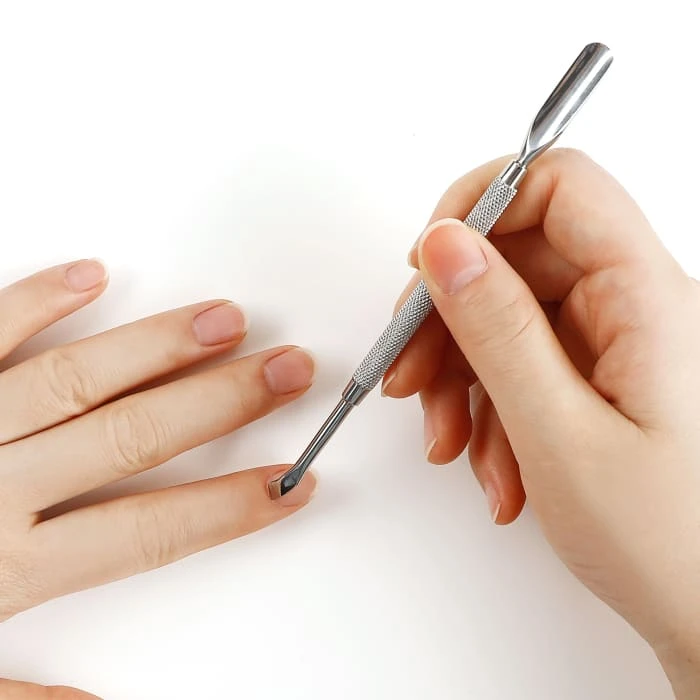 - For best results, soften the nails and cuticles before using the cuticle pusher. This makes pushing the cuticles away from the nails easier. If the cuticles are not soft and you try to push them, you might tear the skin.