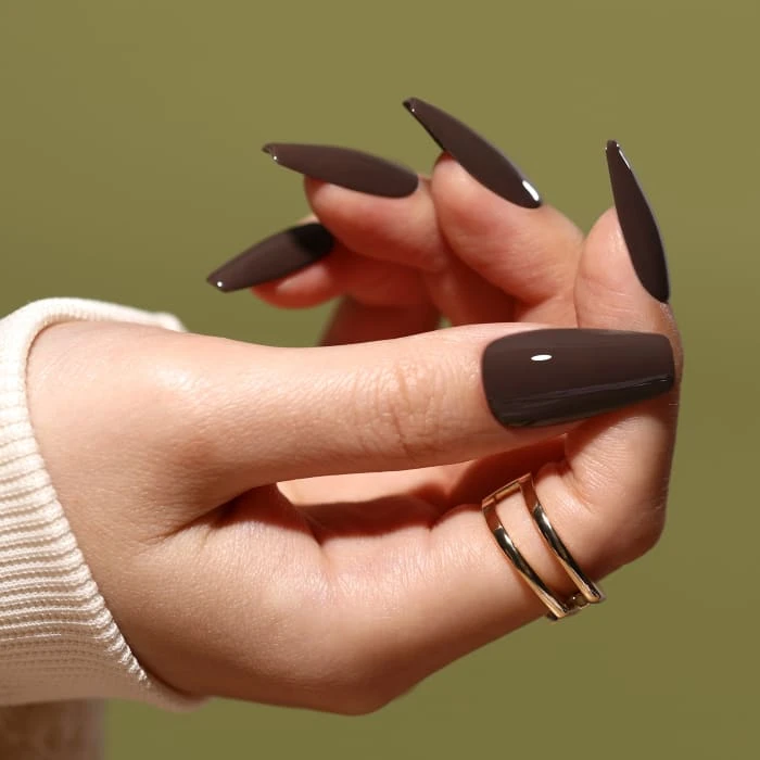 As rich as the darkest cocoa, ‘Divinity’ encapsulates the essence of winter nights, casting a spell of elegance and warmth. Immerse your nails in the deep allure of this dark brown gel polish that exudes sophistication and mystery.