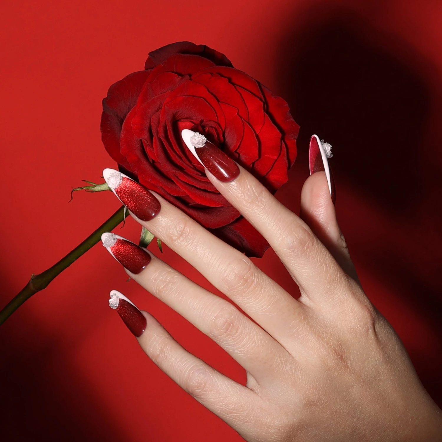 Opposites attract with this captivating gel polish duo. Gweneira, a pure, snowy white, embodies the innocence of love, while Alluring Wine, a deep, sultry red, ignites the passion of desire. Together, they create the perfect balance of romance and temptation—ideal for a Valentine’s look that’s both sweet and seductive