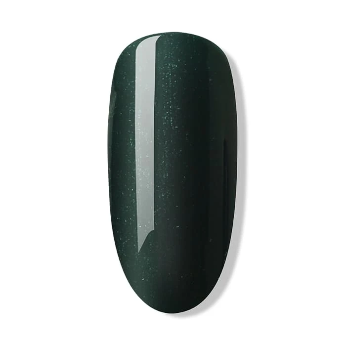 Head straight into the woods with this deep pine green gel polish, finished with a fine glitter effect.