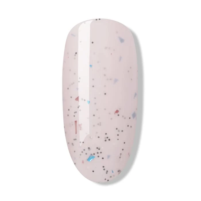Pink Granite is a warm pink base with subtle flecks of blue, pink, white and metallic red and blue flakes.