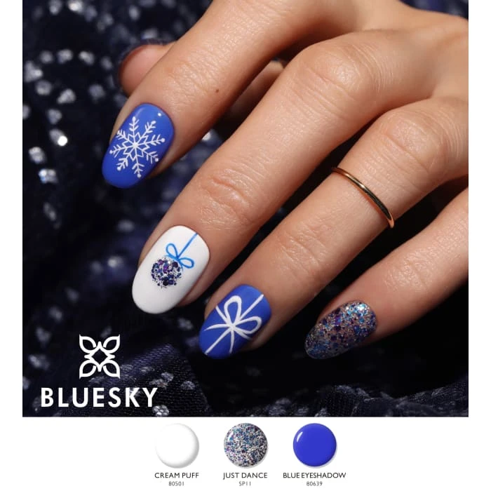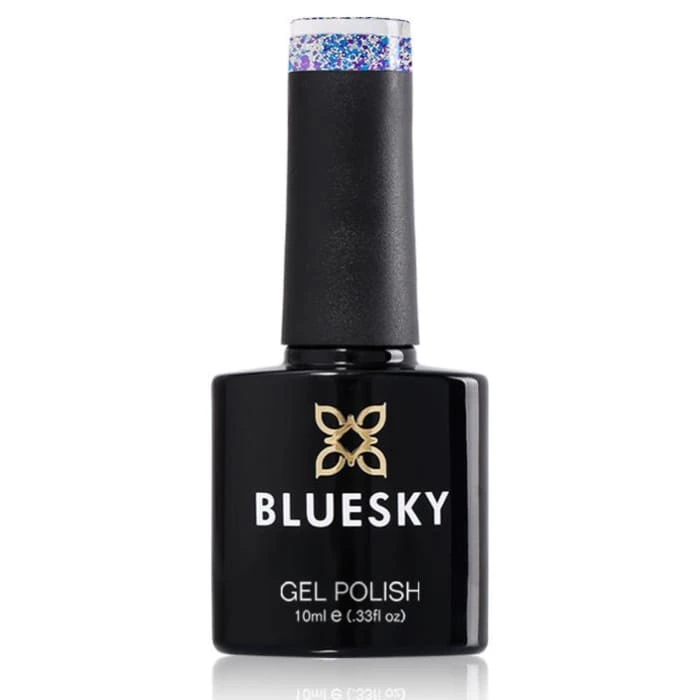 This purple and blue glitter explosion works best when paired with your favourite light gel polish.