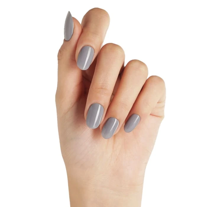 A solid fossil grey gel polish colour.