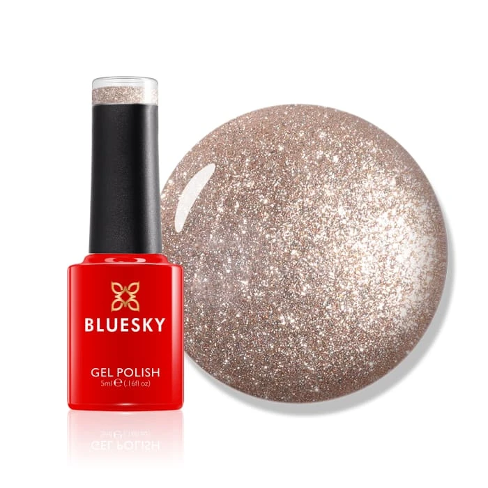 This gel polish is one of our favourites for adding a touch of sparkle, with a gorgeous light gold glitter finish.