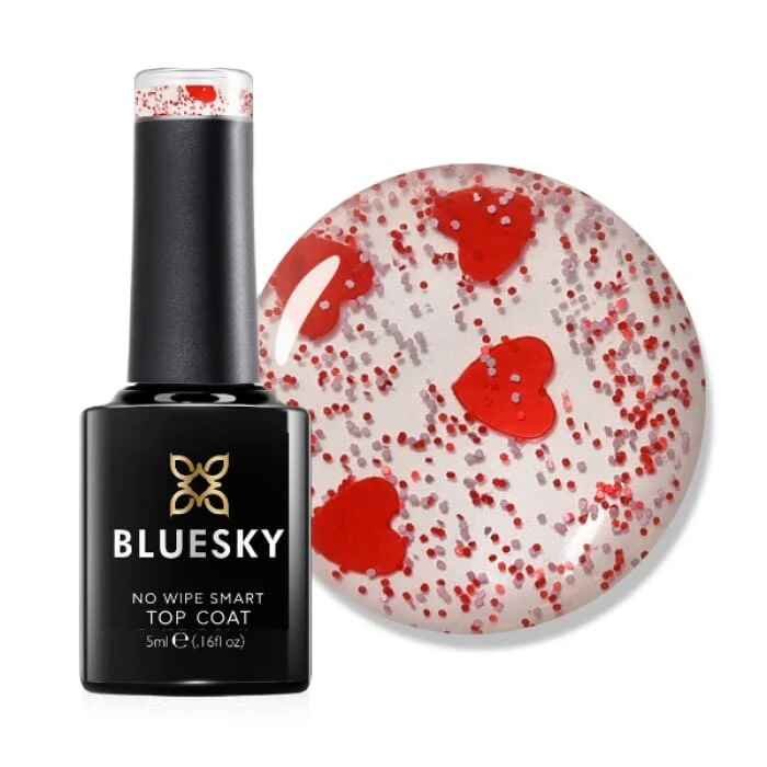 Our Bluesky Queen of Hearts Top Coat in 5ml will steal the show and your hearts! Inspired by the day of love, this No Wipe Smart Top Coat is a stunning fine red glitter with red heart-shaped glitter flakes.