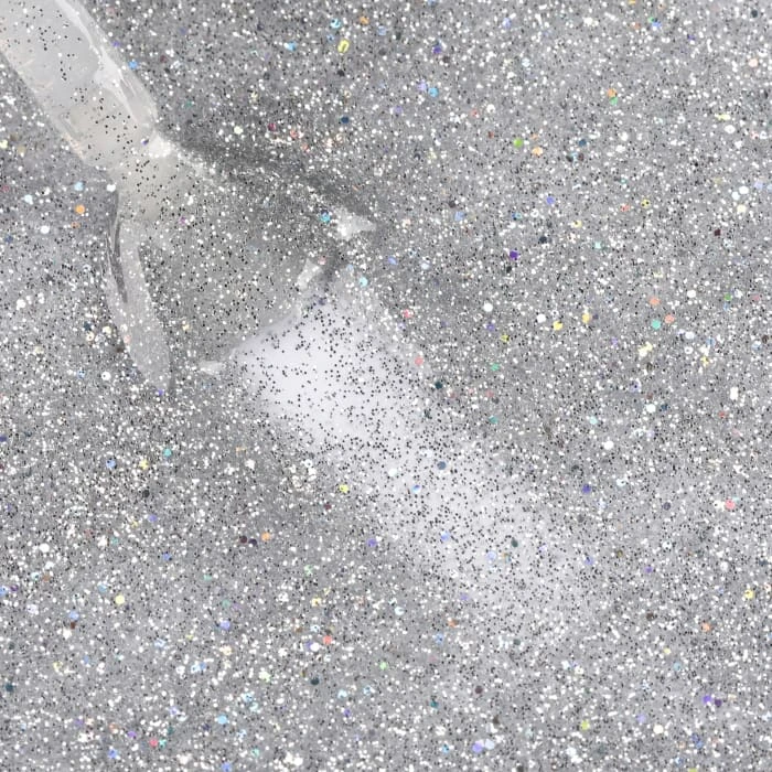 You’ll bring all the glitz and glamour to the party with this silver glitter gel polish.
