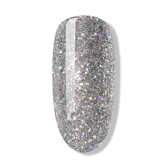 Light, bright and as cold as ice; be cool and sparkly with this silver glitter gel polish.