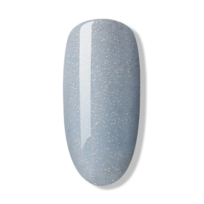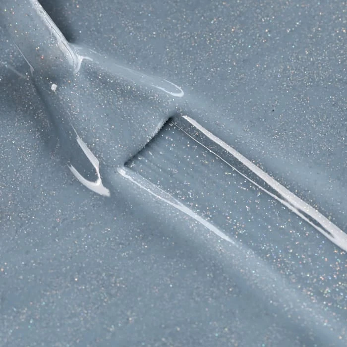 Filled with fine glitter, this cool pale blue with grey undertones creates a beautiful and sophisticated look.