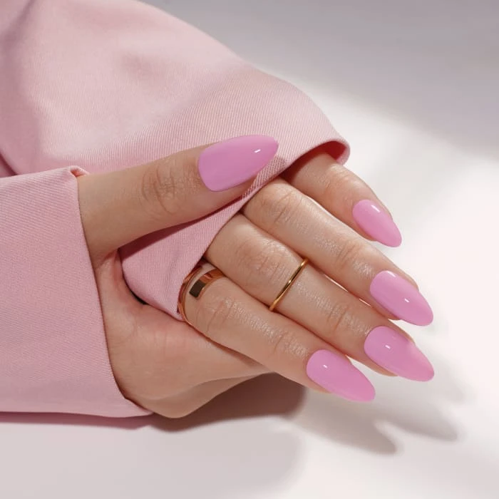 Radiate confidence and charm with this subtle yet powerful pastel pink gel nail polish. A perfectly pretty pink for a chic and polished springtime look.
