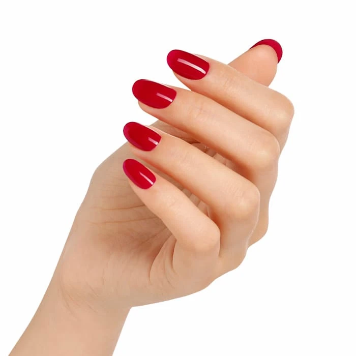 Dare to go red? This crimson gel polish is the perfect deep red shade.