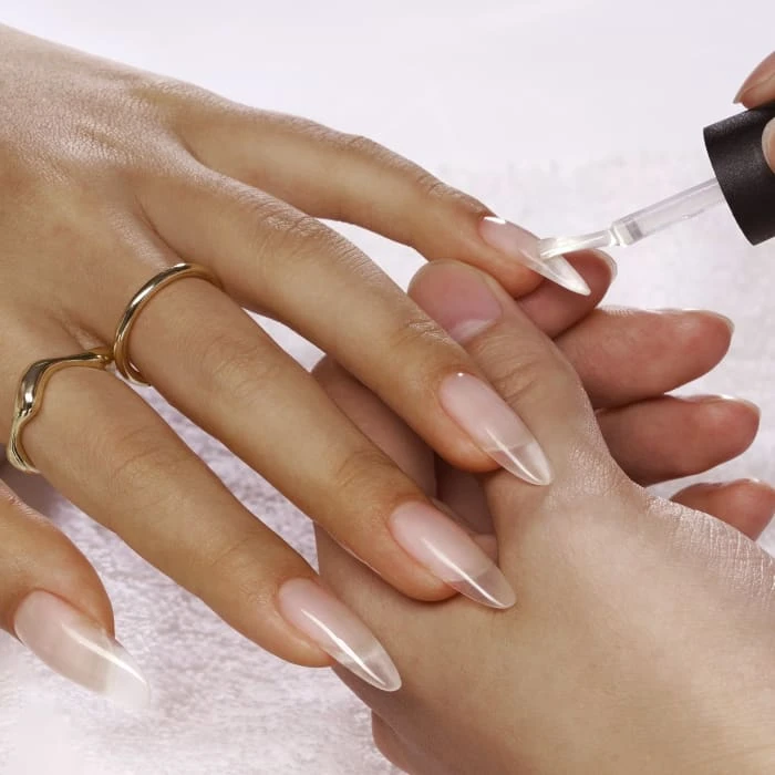 - Apply more Gum Gel to create an apex (this step is important when creating longer extensions); you’ll want to find the stress-point of the nail (where it’s most likely to break) and apply the Gum Gel thicker here. Spread the rest of the Gum Gel out towards the tip of the nail.