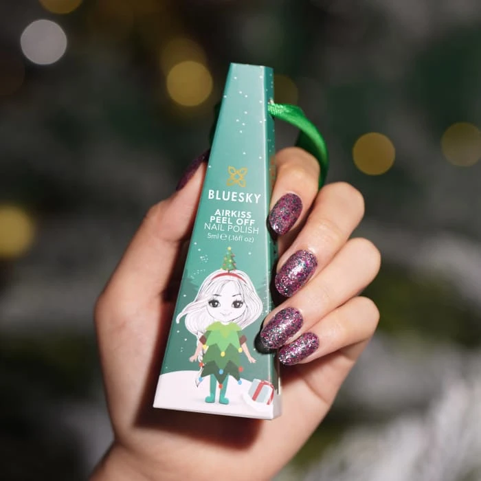 Exclusive Christmas Nail Polish: Inside this beautiful festive gift box you’ll uncover an exclusive Christmas BLUESKY Airkiss Peel-Off Nail Varnish in 5ml. Gift box doubles as a fun Christmas decoration for all the family to enjoy.