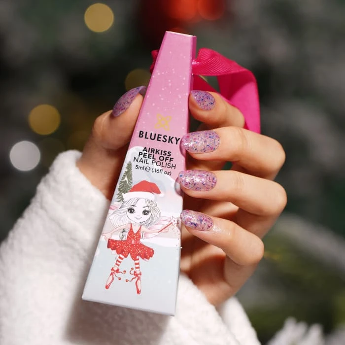 Exclusive Christmas Nail Polish: Inside this beautiful festive gift box you’ll uncover an exclusive Christmas BLUESKY Airkiss Peel-Off Nail Varnish in 5ml. Gift box doubles as a fun Christmas decoration for all the family to enjoy.