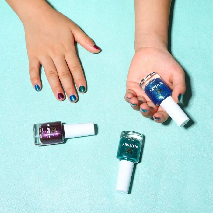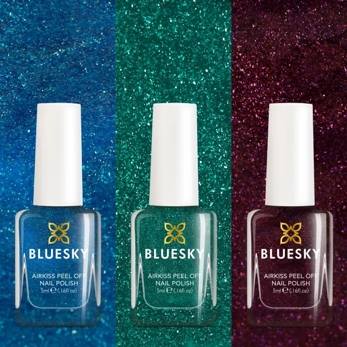 Reach for the stars with this cosmic trio of AirKiss peel-off nail polishes! Easy to apply and remove.
