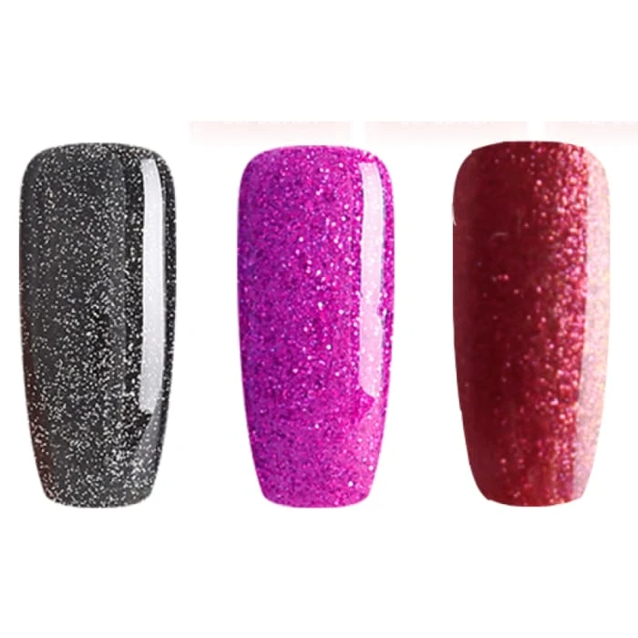 Our Crystal Purple Mini Trio Set includes your favourite black, red and pink glitter gel polishes to make any manicure stunning!