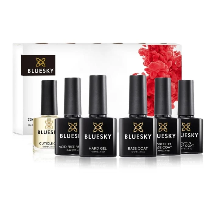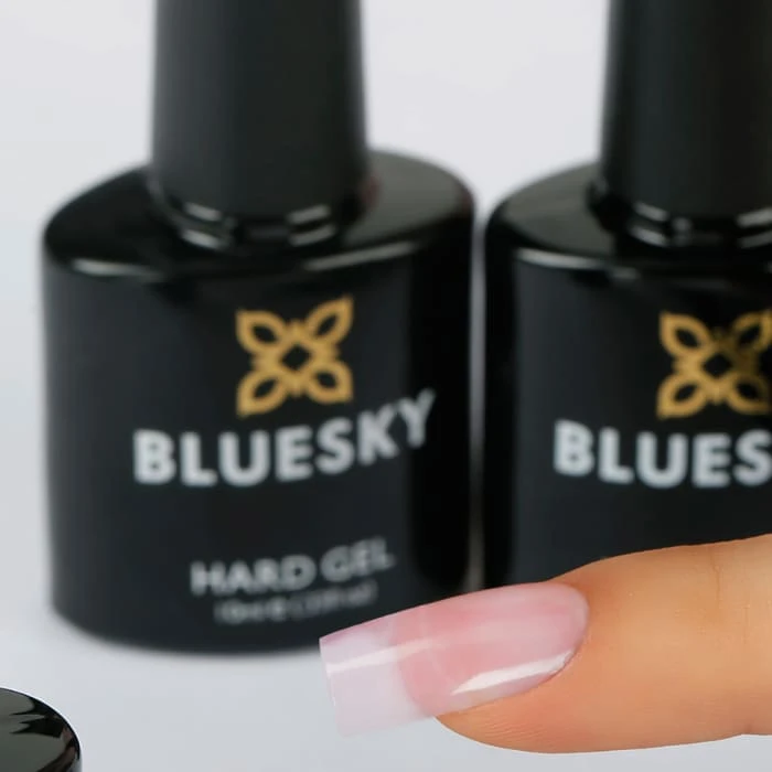 Use Bluesky Hard Gel to add extra strength to your nails. Bluesky Hard Gel comes in a bottle so that you can paint directly onto the nails for easy application and great results. Apply after your Base Coat or your gel colour coat and cure for 60 seconds.