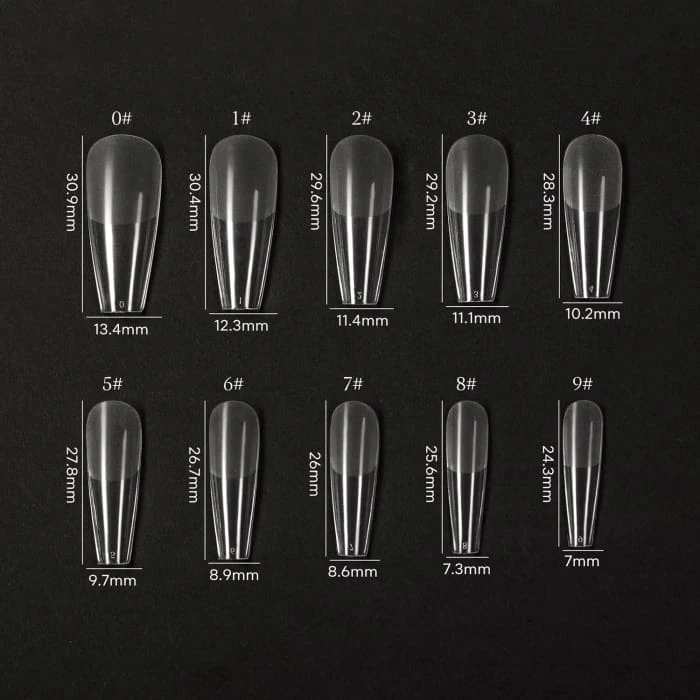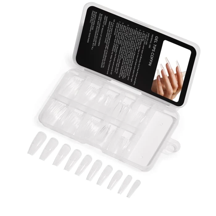 - Fit the gel tips to the nail beds and select the right size tip for each nail.
