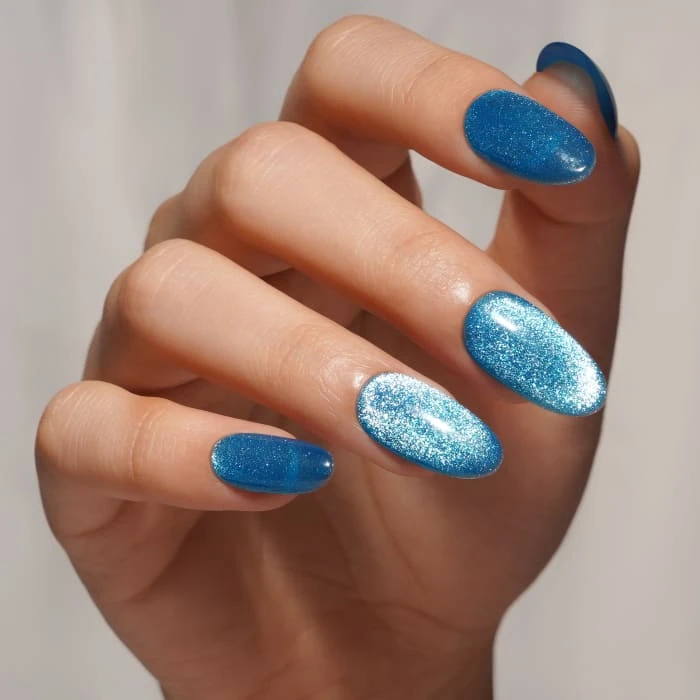 Dive into the dreamy depths of Aquamarine Dream. This beautiful blue shade from our Sparkle Diamond Cat Eye Gel Collection will transport you to a world of serenity and style. Use on its own or with a Bluesky Magnet before curing to create a stunning effect.