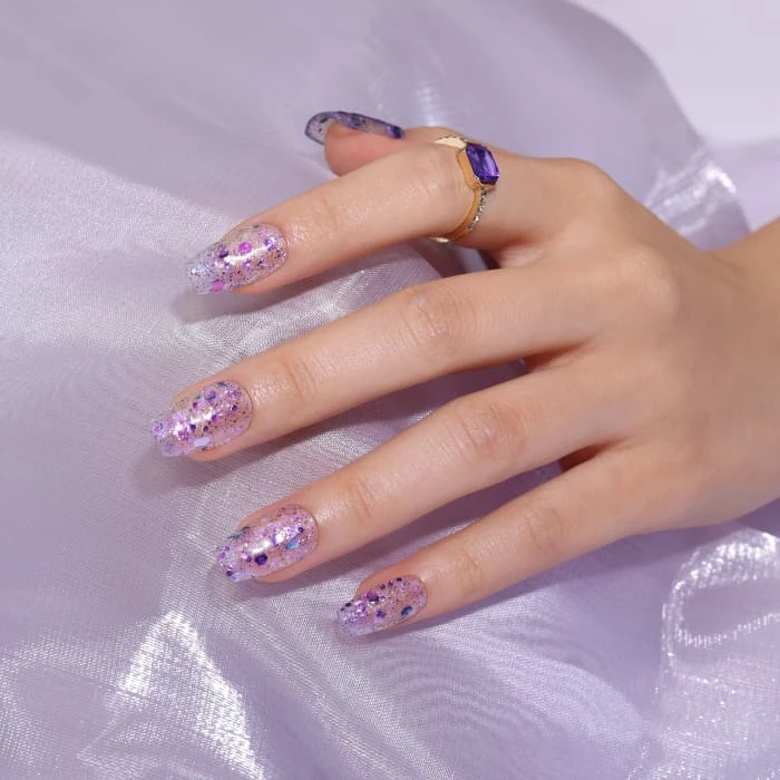 A mesmerizing purple glitter that mirrors the beauty of twilight skies.